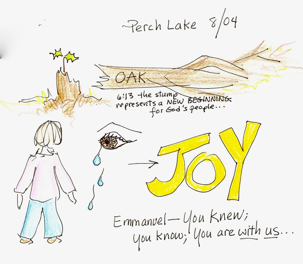 When I got back to the cabin, I opened the Bible and this verse jumped out at me: Isaiah 6:13 “…he will be like the stump of an oak tree that has been cut down. The stump represents a new beginning for God’s people.” The Bible at the cabin was a different translation than my one at home; the wording of this version was a perfect gift from God to me.