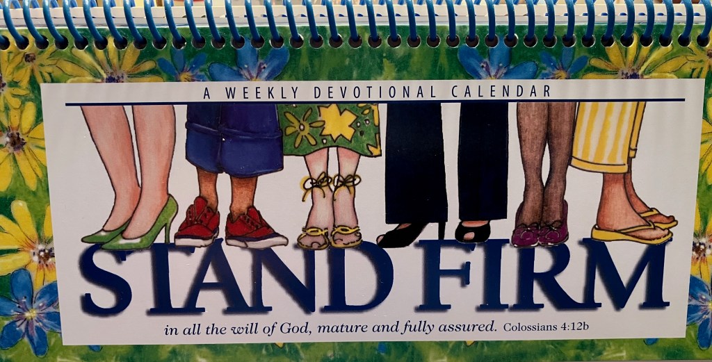 I have a perpetual calendar on my desk from 2007 with the words “Stand Firm” on the cover, taken from the Scripture Col 4:12b, “stand firm in all the will of God, mature and fully assured.” It has a verse about standing firm for each week of the year, often accompanied by words from a Christian witness, hymn or poem, or from the founder of “Moms in Touch,” Fern Nichols. I had joined a Moms in Touch prayer group in our parish, where we met together weekly to pray for our kids and our schools.