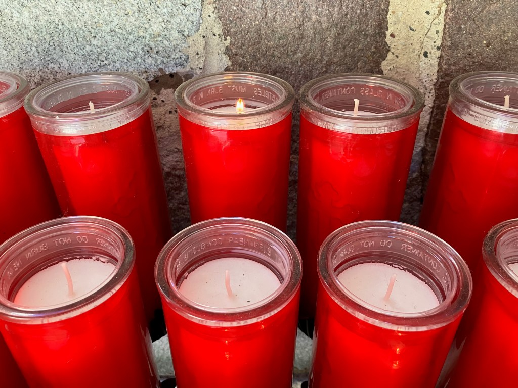 That was when we lit it at first – just when something special was calling for prayer.  It might be a birthday celebration, or a need for healing, or safe travel, or….  As time went on, we lit it more and more, until it became a perpetual light near our little Mary space, with a statue of the Blessed Mother and a flower in her honor.  This holy practice has become a part of my devotional life ever since, and it’s been 45 years since we lit that first candle.